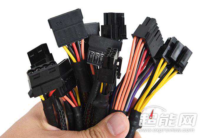 先马实力先锋500W电源提供有4+4pin处理器供电接口、2个6+2pin显卡供电接口、2个D型4pin接口和4个SATA供电接口,每个显卡供电接口均采用独立线材供电。