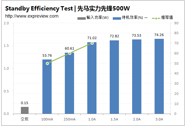 按规范中的推荐值,5Vsb在100mA/250mA/1A的负载下转换效率应该高于50%、60%、70%,待机空载小于1W。