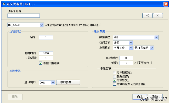 支持ABB的AC500系列PLC串口通讯;