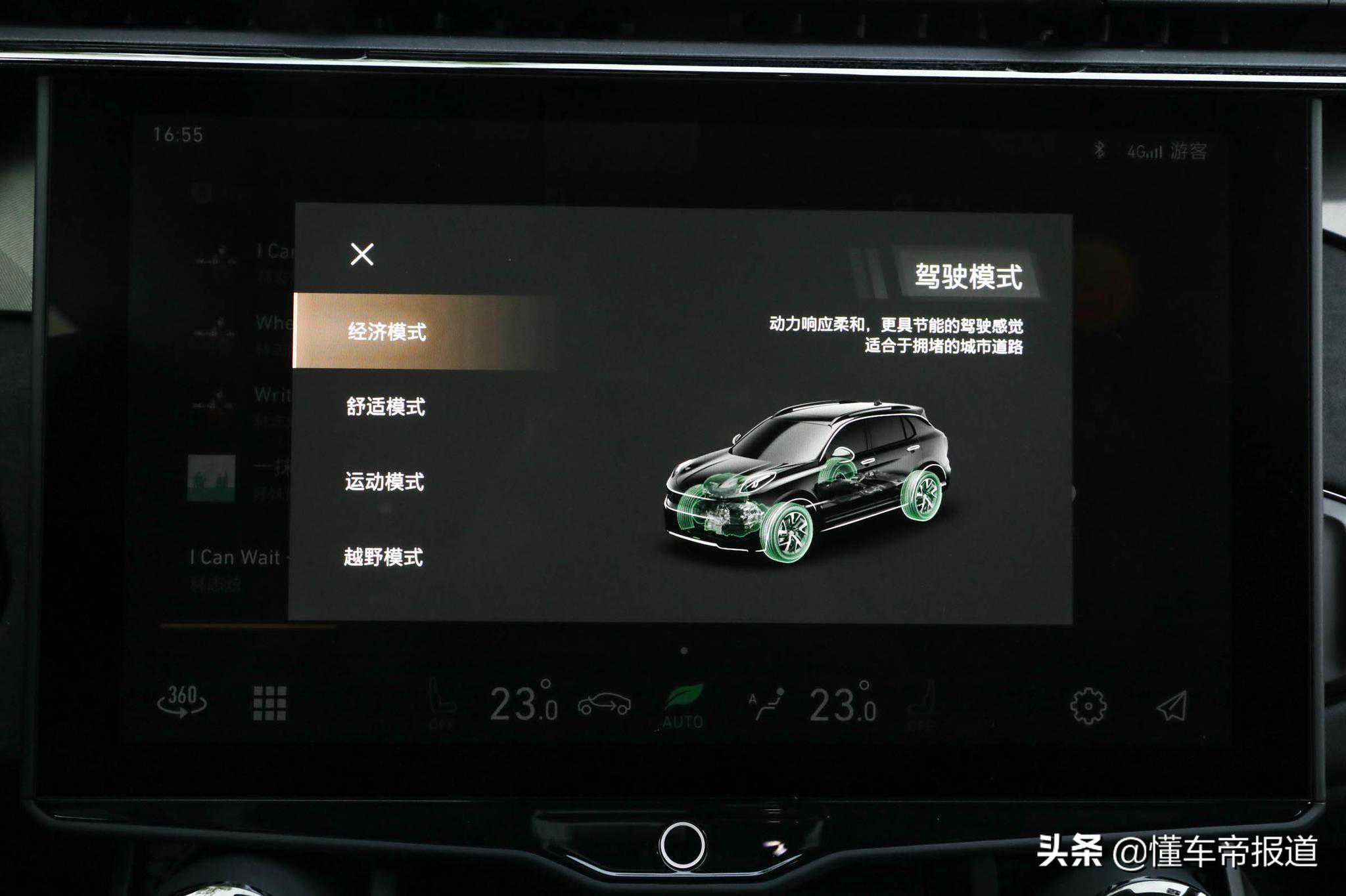 而作为四驱车型,该车配有经济、舒适、运动和越野四种驾驶模式,四驱系统是以多片式离合器作为中央差速器的适时四驱系统。在车速低于40公里/小时的状态下即可开启越野模式,而诸如陡坡缓降等辅助功能会随时待命,根据车身姿态、车轮附着力状态等判定出发条件后,即可自动介入,无需驾驶者另行操作。可见,新款领克01还是保持着比较不错的通过性能的,应付一些难度不大的非铺装路面是没有问题的。