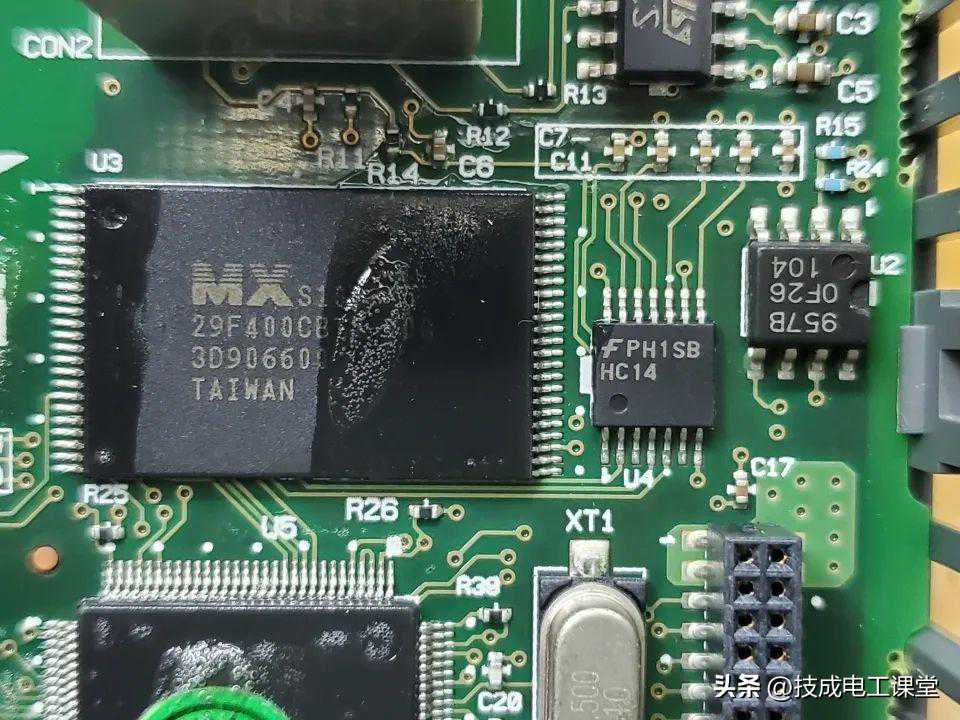 主控芯片U1,丝印H8S/2424是一颗瑞萨的16位高速中央处理器,为实现低成本的系统配置而提供的片儿上外围功能是DAM控制器EXDMA控制器。数据传输控制器串行通信接口IC总线接口同步串行通信单元Ad转换器da转换器和各种定时器。