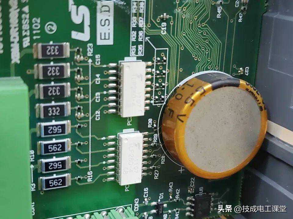 一颗大电容,旁边两颗TLP280-4,是东芝的一颗光耦合器。