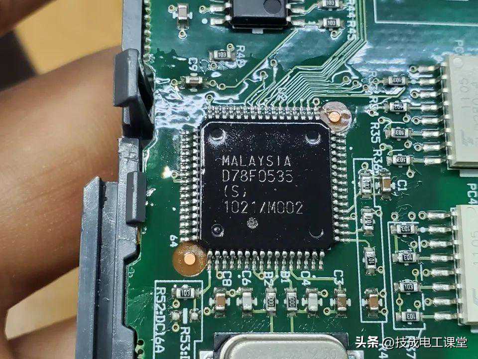 左边那个马来西亚生产的瑞萨D78F05358位单片微控制器。
