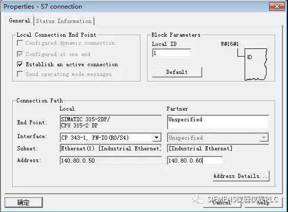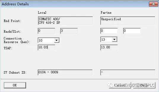 在“AddressDetails”对话框中,本地的TSAP通常选用默认,输入通信伙伴的TSAP,本例中S7-200的TSAP为12.00。