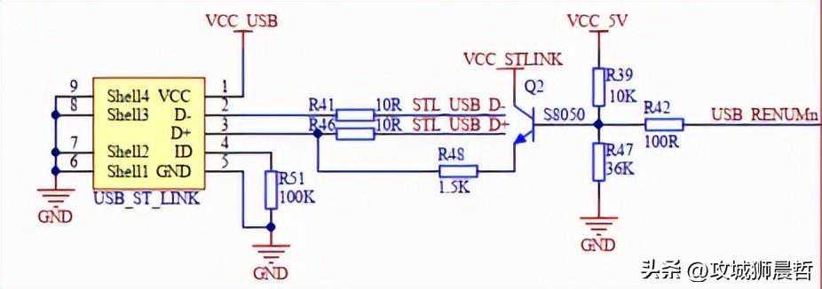 3.1、USB接口电路潘多拉开发板上的USB_ST_LINK可以直接搬运过来,本设计中使用的是USB-Type-A