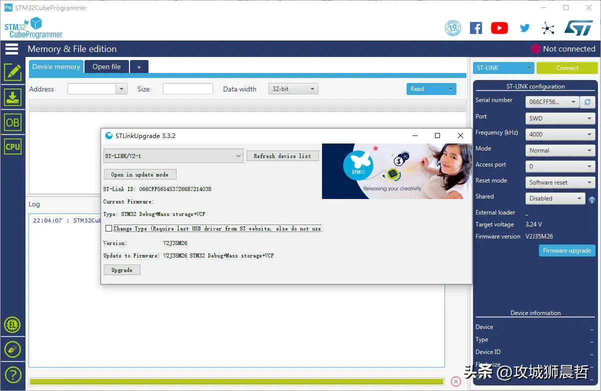 使用STM32CubeProg或者STM32ST-LINKutility自带的升级工具升级