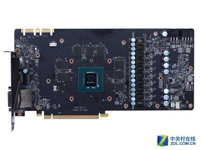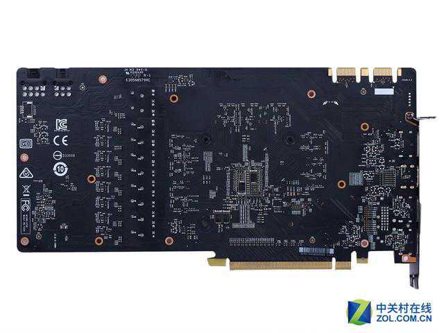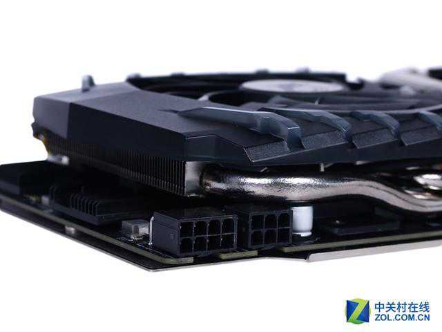 考虑到高频下稳定工作以及超频的需要,微星GTX1070TiTitanium钛金版显卡配备的是8+6pin供电,不同于公版的8pin设计,能够为显卡额外提供75w的电力,而且卡口朝向PCB背面,方便电源线插拔。