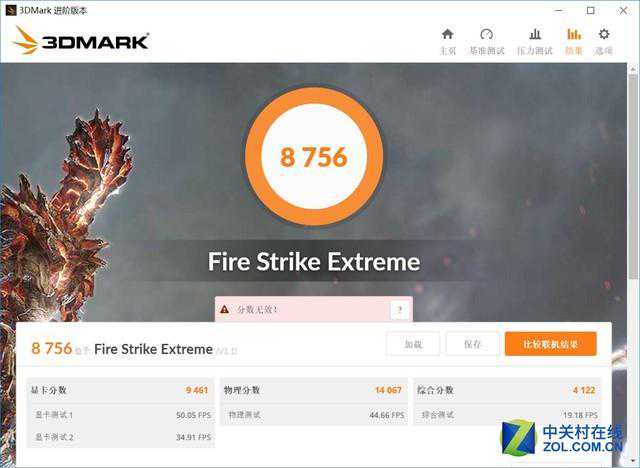 首先进行的是用来衡量显卡理论DX11性能的3DMarkFireStrike测试,选择模式为Extreme,对应的是2K分辨率,测试结果如下: