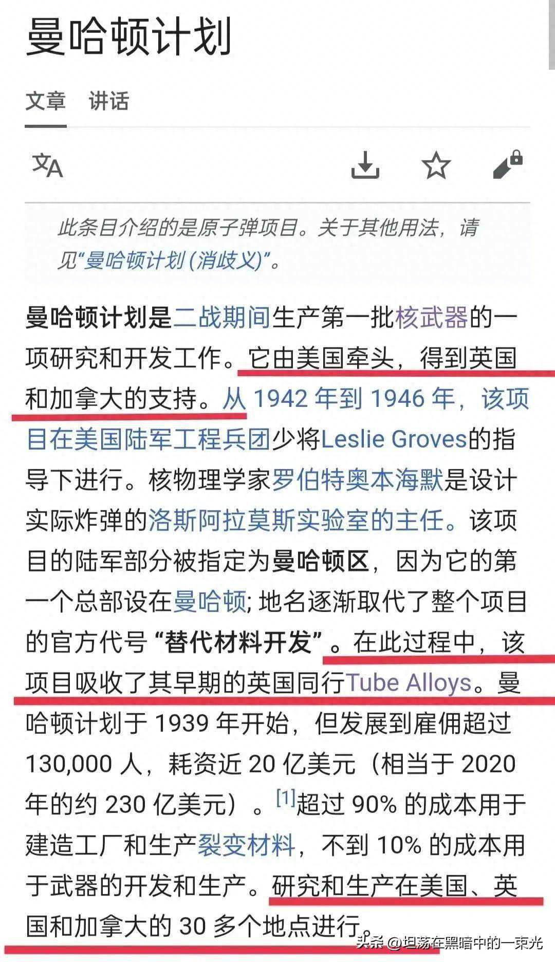 英国研究核武器早于美国,但随着战事发展,美国人力物力财力优势愈发明显,且盟国需要统一规划,于是在1943年,罗斯福和丘吉尔签订了《魁北克协议》,将英国管合金项目正式并入美国曼哈顿工程,英国将已取得的成果通通交给美国,大量英国科学家也来到了美国,投身于曼哈顿工程。