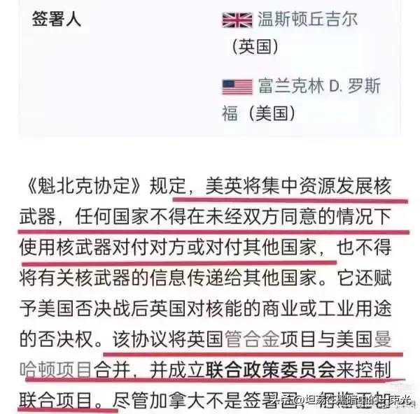 《魁北克协议》规定,两国任意一国使用核武器,需要对方同意,也就是说,美国向广岛长崎投放原子弹,是需要英国同意的。