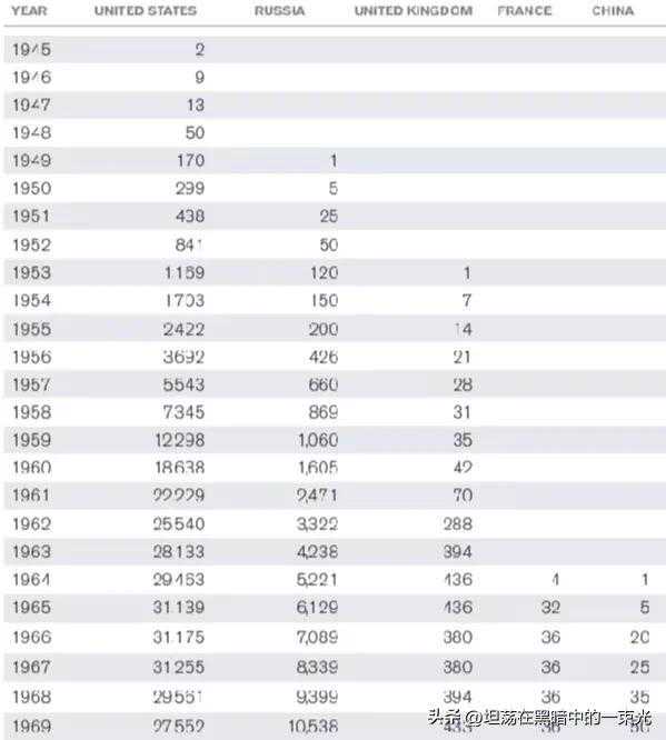 1969年英国拥有433枚核弹,法国拥有36枚核弹。核储备谁是世界第三,一目了然。