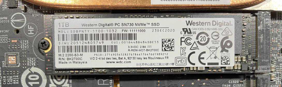 内存左边是两个硬盘接口,其中一个预装了西数SN7301TB固态硬盘,这是一块被广泛认可的高性能固态硬盘。