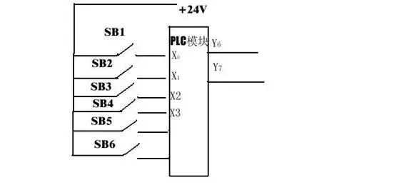 输入信号有:A相脉冲,B相脉冲,正转按钮SB1,反转按钮SB2,增速按钮SB3,减速按钮SB4,启动按钮SB5,停止按钮SB6。