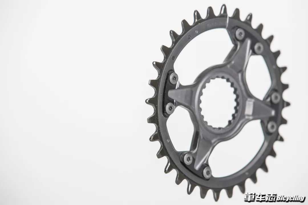 新款DEOREXT1X12曲柄组采用HOLLOWTECHII中空曲柄及一体式轴心,链轮片使用DynamicChainEngagement+齿形(即宽窄齿)。