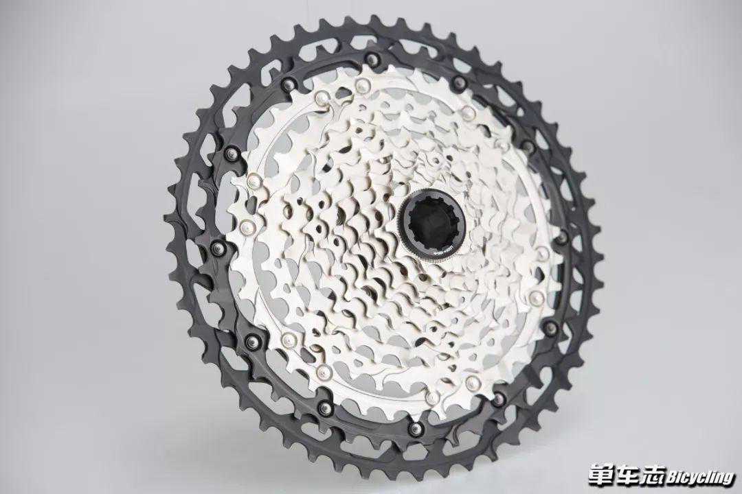 M8100飞轮的2X系统分别设有10-45T、1X系统则设有10-51T,以1X系统为例,最小五个飞轮片以2齿跳进(10-18T),21到33齿则每个以3、4、5齿而进,最后的45T到51T则直接以6齿跳进。