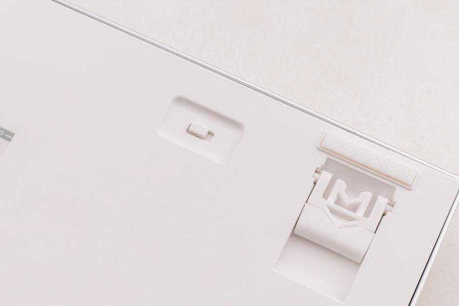 雷柏MT510PRO多模无线机械键盘的底部采用的是的ABS材质的底盖,底盖上还加入了防滑条防止使用过程中的打滑问题,可以帮助用户更好的使用。雷柏MT510PRO多模无线机械键盘的开关也是位于键盘的底部,在使用过程中可以通过拨动物理开关来开启或者关闭键盘。