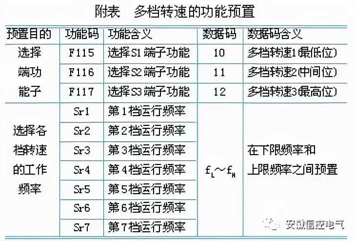 第一步:在输入控制端子中选择若干个端子(附表中为3个)作为多档转速输入控制端;