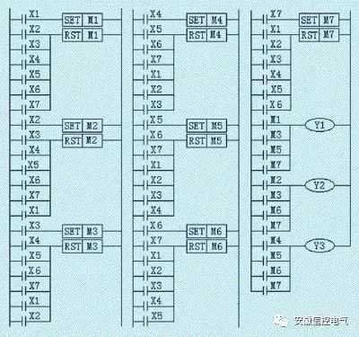 (c)梯形图之二(SB1~SB7为自动复位型按钮开关)如图12所示。