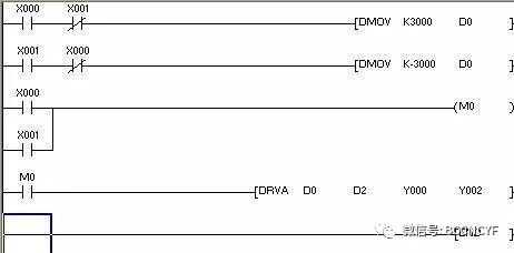 ·当机械在B点时(假设此时D8140的值是-3000)闭合X0,则机械正转3000个脉冲停止,也就是停在了原点。D8140的值为0