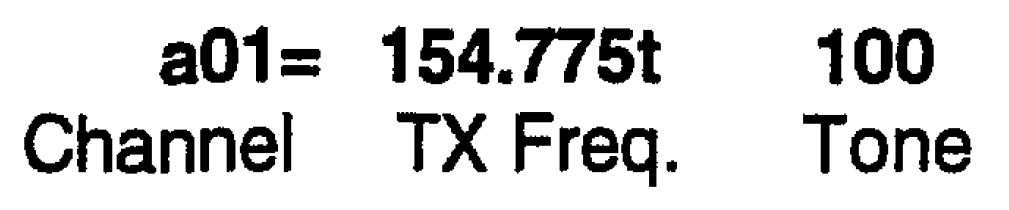 “=”表示“TONESAREENABLED”音调已启用。这只出现在一次音调是从“STATUSEDIT”状态编辑功能中打开。音调可以存储,但不能活动,和只能激活TX,或同时激活TX和RX。仅TX是“USFS/OAS/BLM”林业正常模式。如果所有的音调(两者RX和TX)被激活,在某些单工操作中可能不会听到任何音频,因为没有