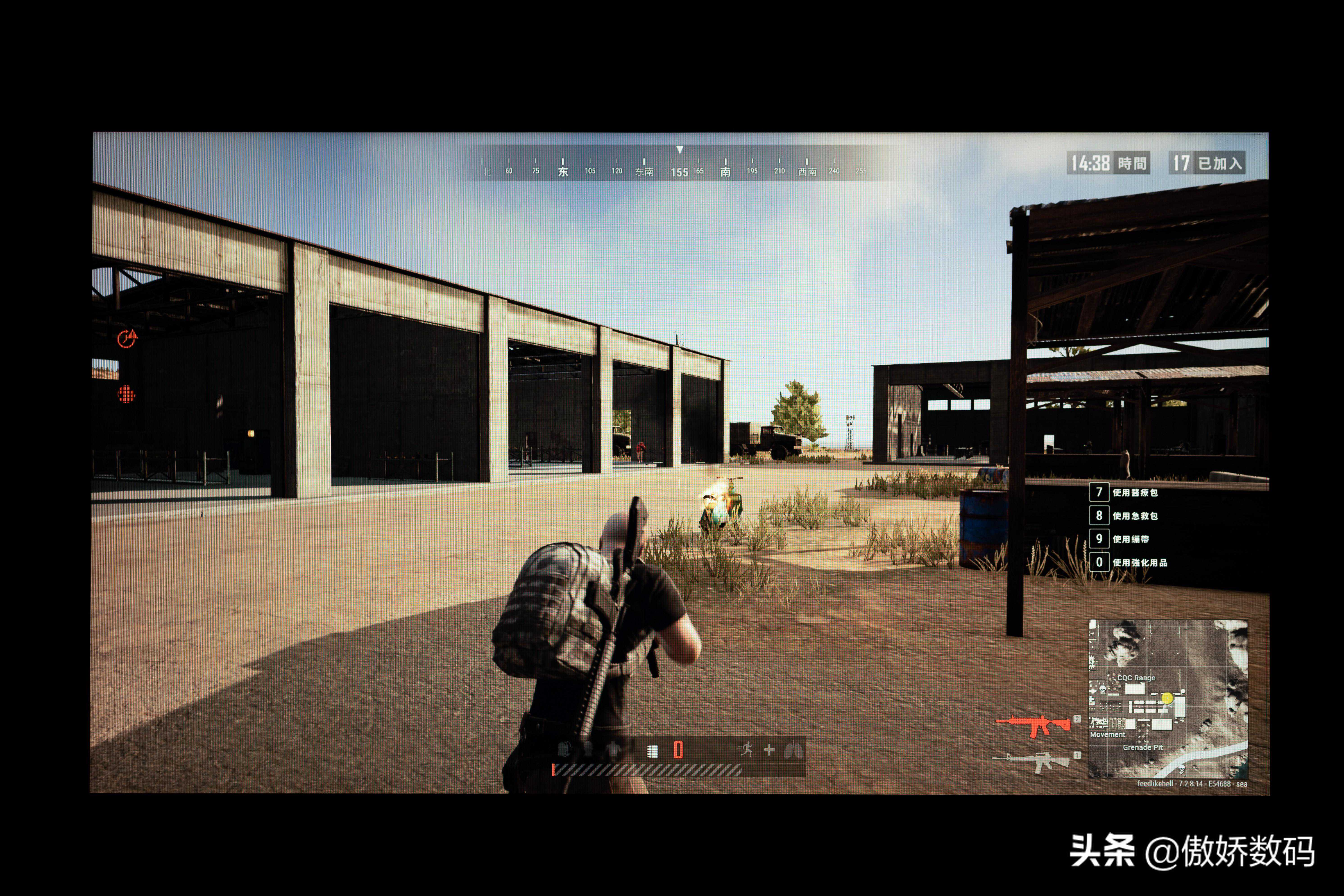 全部设置开到超高到吃鸡训练场里玩一圈,完全没有感受到任何卡顿,加上有144电竞屏助力,可以说是丝般顺滑的感觉了