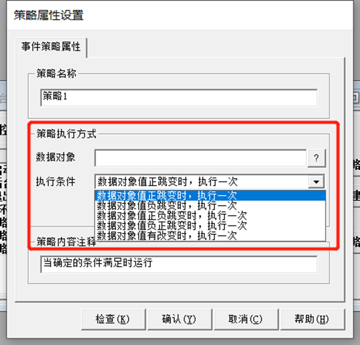 事件策略由用户在组态时创建,当对应数据对象的某种事件状态产生时,事件策略被系统自动调用一次。