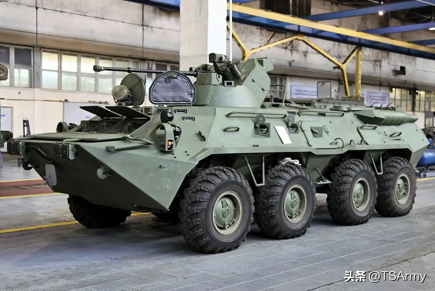 也是在2020年阅兵式中出现的新型轮式8X8装甲车,外形和美制的斯特瑞克很像,但根据车身侧面,还有轮子,应该是在俄制BTR-80装甲车上面改装而来,这个系列也有变形车,比如常规步战车、导弹发射车等。