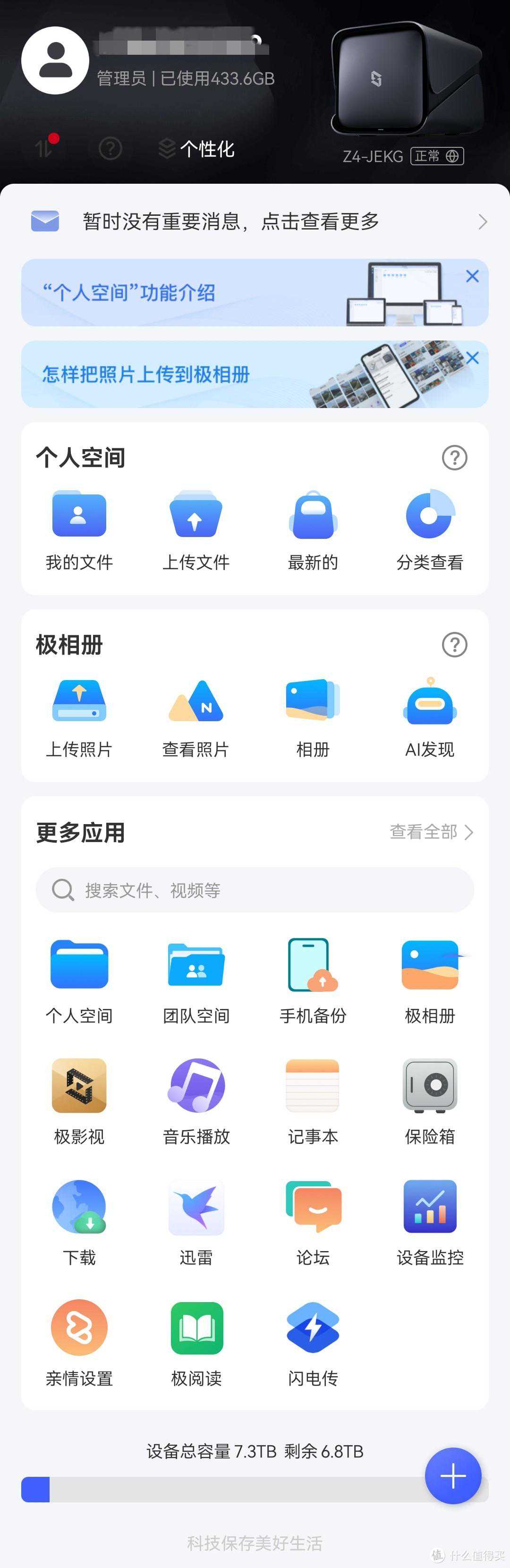 而极空间在这一点真的是做的很棒,不服不行。无论是文件管理、照片备份,还是PT下载、影音播放、文件分享,几乎所有的功能与设置都能通过手机上这一个APP来实现。