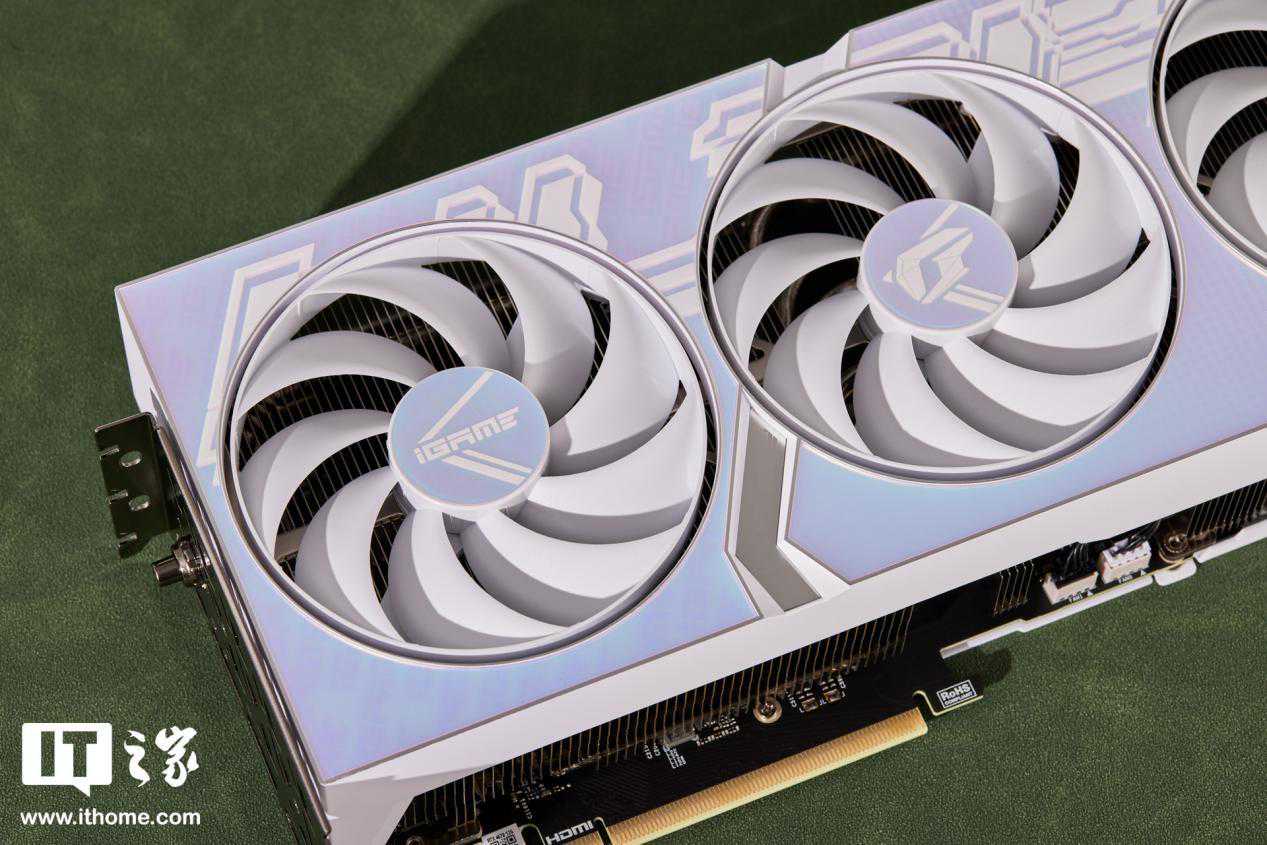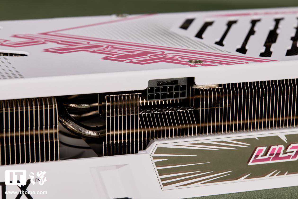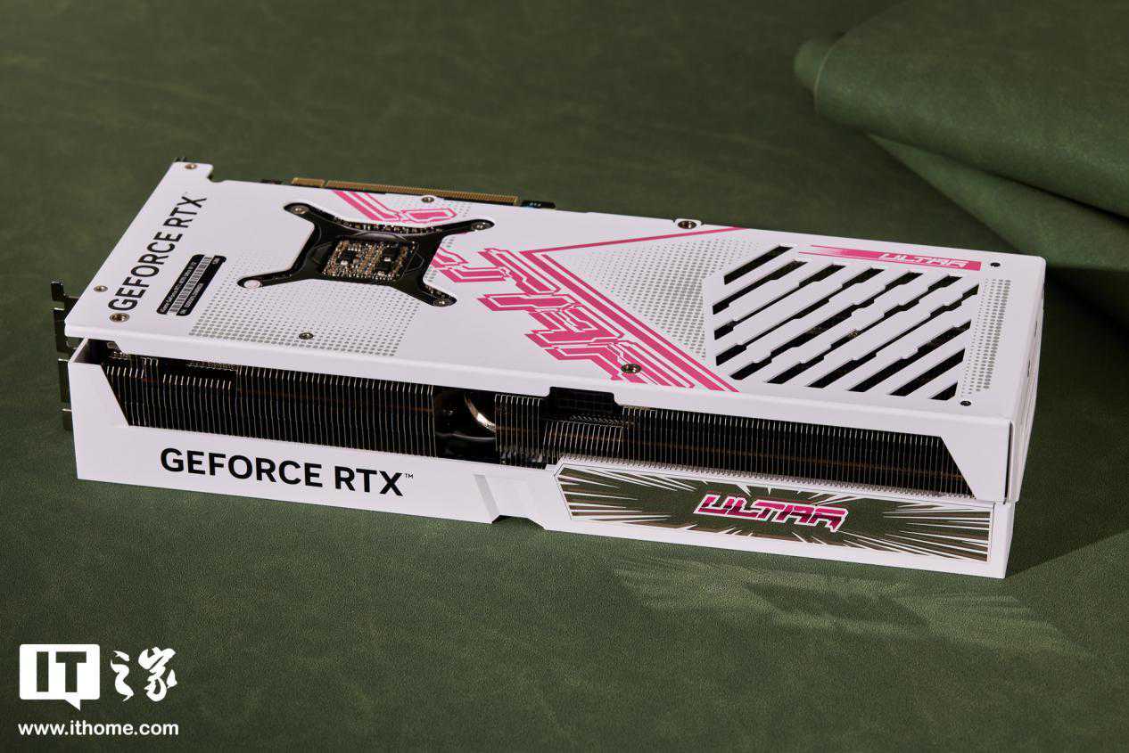 iGameGeForceRTX4070UltraWV2显卡的背板主体呈现白色,饰以粉色的UltraLogo,色彩鲜艳夺目。