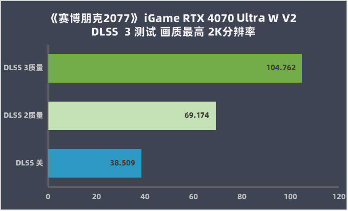 iGameGeForceRTX4070UltraWV2在2K分辨率且不开启DLSS2时,就已经能满足68帧畅玩了。如果开启DLSS2质量档,就能达到平均87帧,如果开启DLSS3插帧后,帧数更是会暴涨到平均135帧,满足2K高刷显示器的需求。