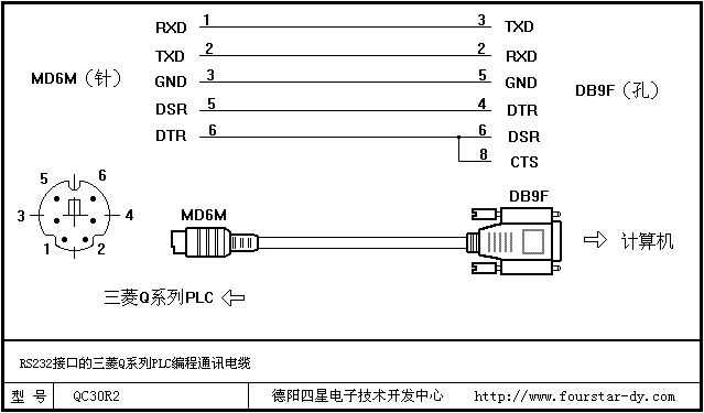 RS232接口的三菱Q系列PLC编程通讯电缆