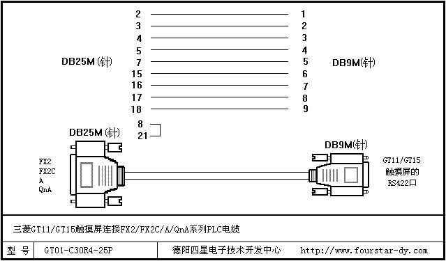 三菱GT11/GT15触摸屏连接FX3U/FX2N/FX1N系列PLC电缆