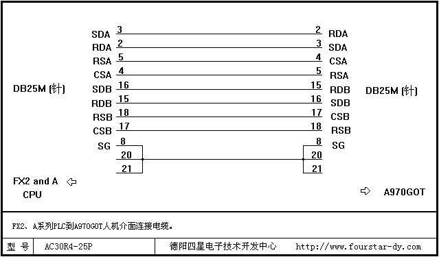 FX2、A系列PLC到A970GOT人机介面连接电缆