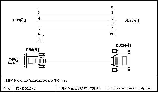 计算机到FX-232AW/FX0N-232ADP/50DU连接电缆