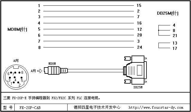 三菱FX-20P-E手持编程器到FX2/FX2C系列PLC连接电缆