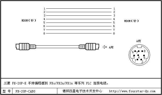三菱FX-20P-E手持编程器到FXo/FX2n/FX1n等系列PLC连接电缆