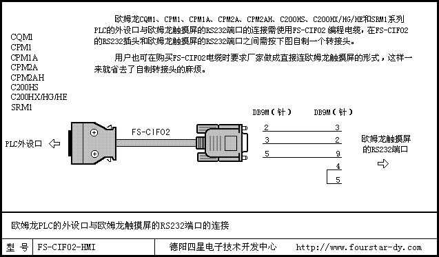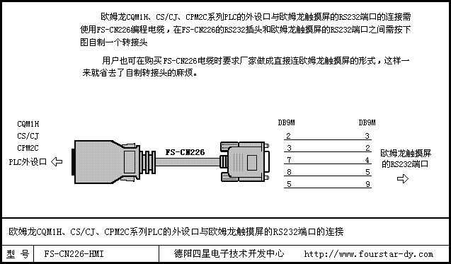 欧姆龙CQM1H、CS、CJ、CPM2C系列PLC的外设口到欧姆龙触摸屏的RS232端口的连接电缆