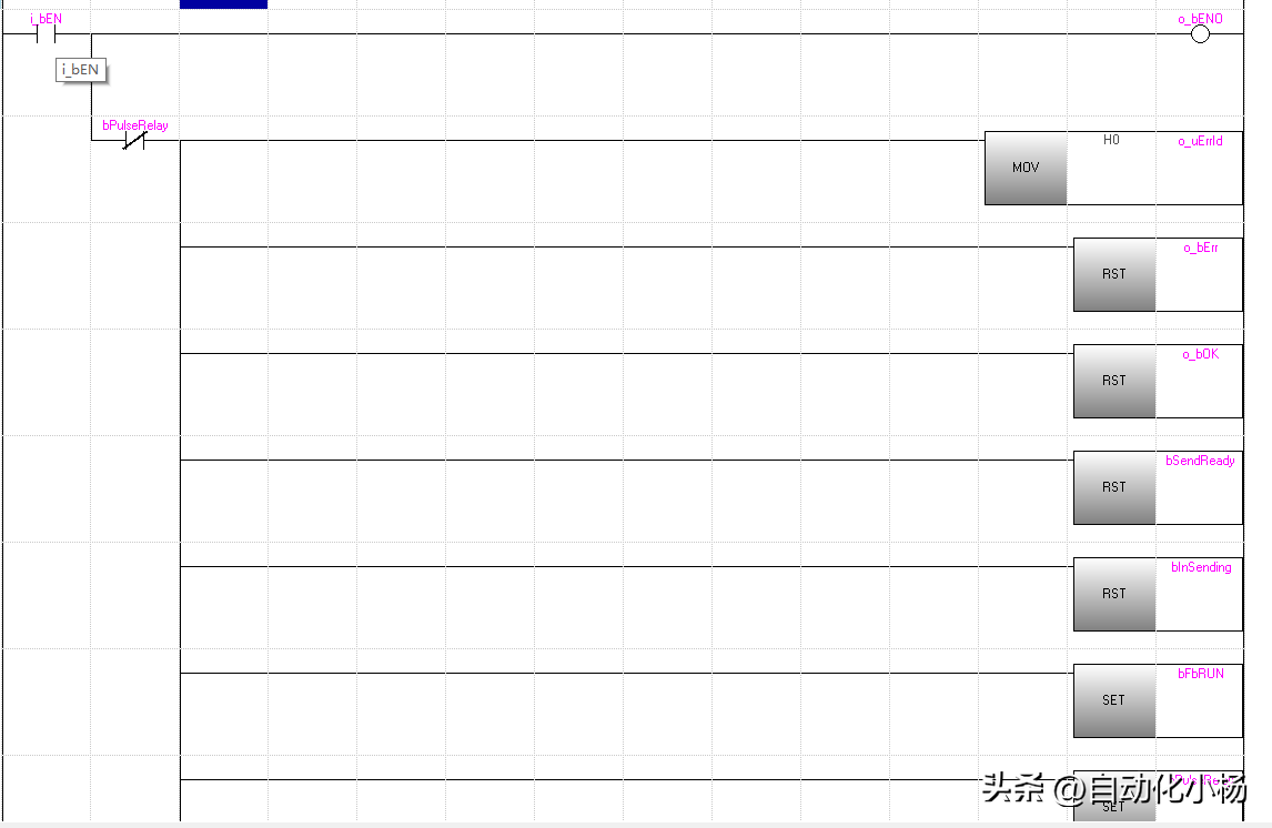 当我打开看第一眼的时候就感觉程序看起来比较的清爽,当打开多个FB块你就会发现,基本都是一个套路写下来的程序。