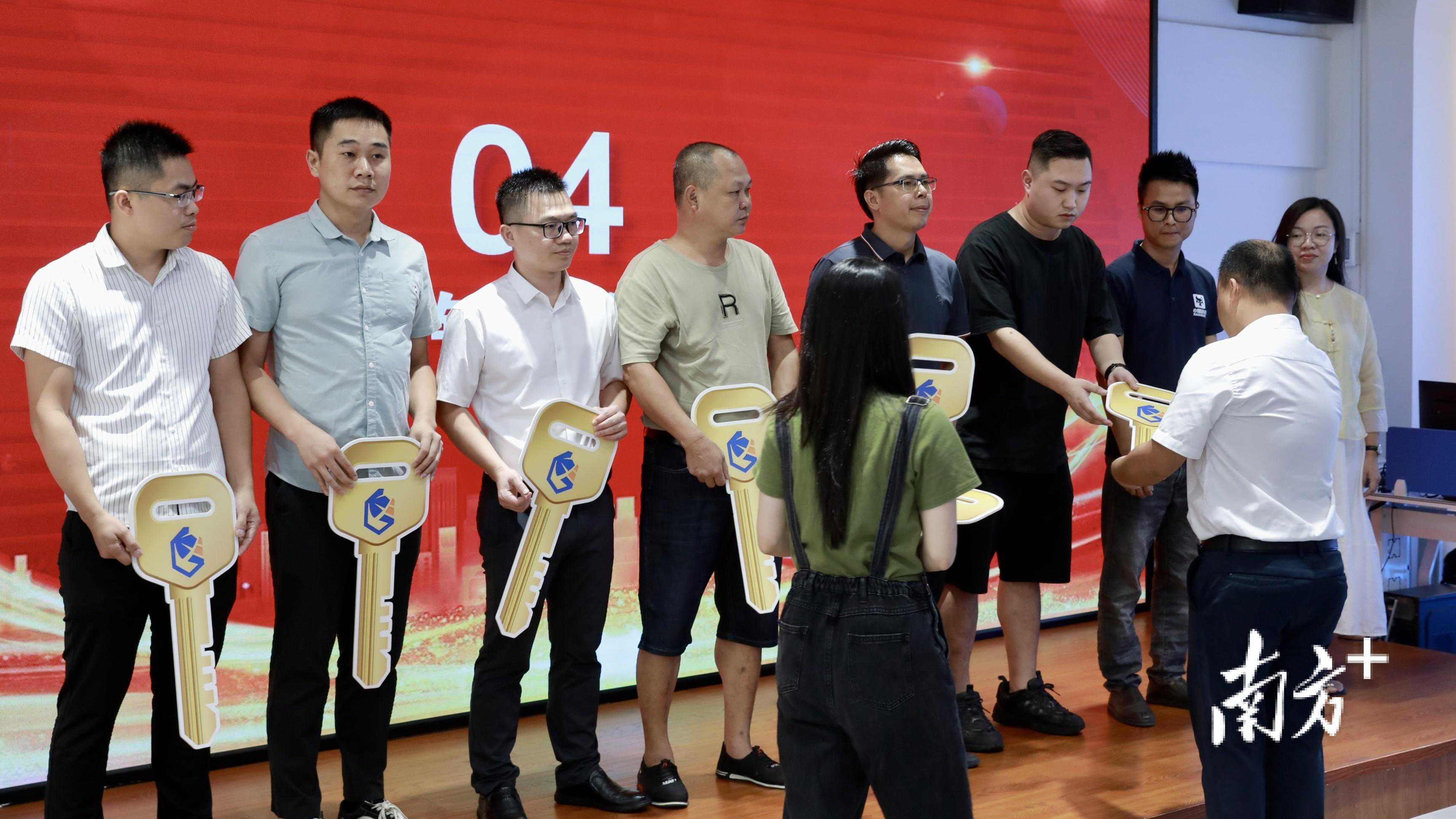 为充分介绍新入驻的企业,各企业轮流上台进行了展示,最后进行了“交钥匙仪式”,由梅州市广梅产业园发展服务有限公司董事长赖福群依次为企业颁发钥匙,并合影留念。