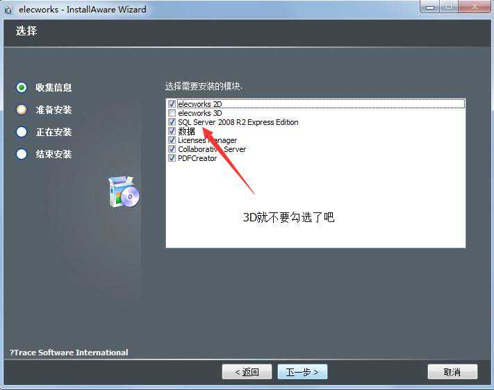 八,选择需要安装的模块,这里我没有选择3D,如果你有需要可以选择。