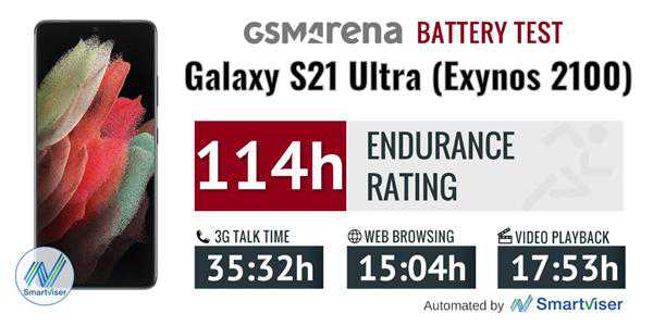2月14日消息,媒体GSMARENA对两个版本的三星GalaxyS21Ultra进行了续航测试,从中观察不同处理器平台对终端的续航体验是否存在大的影响。