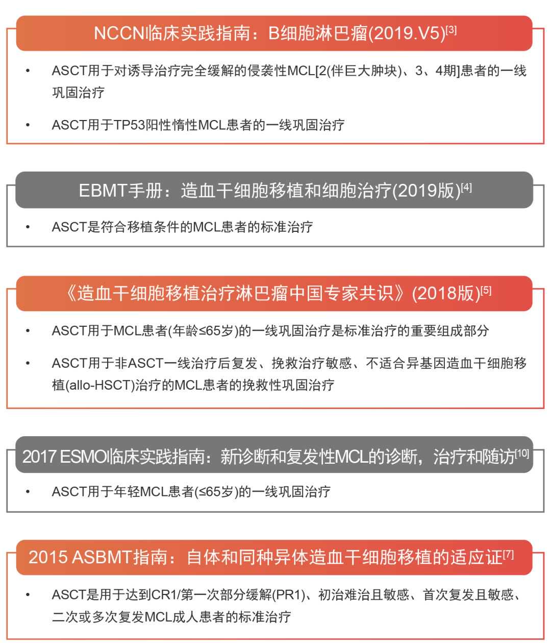 四、ASCT应用于套细胞淋巴瘤(MCL)的指南推荐