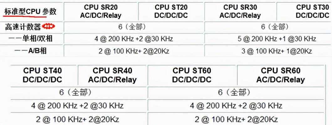 三、200SmartPLC各型号高速计数器参数