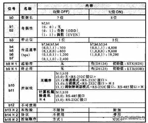 注:通信格式字确定后,用传送指令MOV将其传送入特殊寄存器D8120。同时,对PLC进行一次断电,上电操作,确认通信格式字的写入。在RS指令驱动期间,即使变更D8120的设置,也不会被接收。