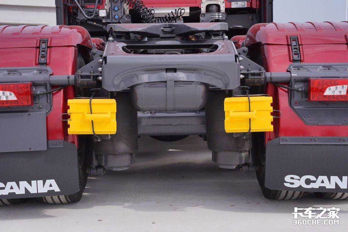 斯堪尼亚S系列在底盘上的功夫也不少,普通S系的油箱容积为900升,V8车型的油箱容积为800升,并且都将尿素系统、储气罐等零部件整合在车辆底盘下方和轮拱罩之间,尿素罐容量为73升,灵活运用了车架内部的空间。