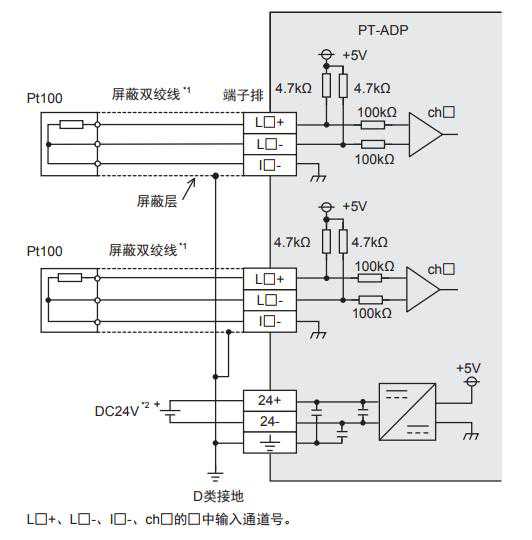 1)FX3S可编程控制器上只能连接1台PT-ADP。FX3G、FX3GC可编程控制器上最多可以连接2台*1PT-ADP。FX3U、FX3UC可编程控制器上最多可以连接4台PT-ADP。(包括其它模拟量功能扩展板和模拟量特殊适配器)