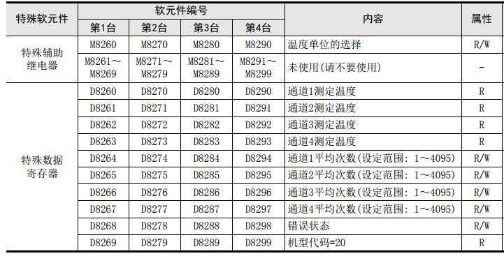 3)测定的温度被自动写入FX3S、FX3G、FX3GC、FX3U、FX3UC可编程控制器的特殊数据寄存器中。