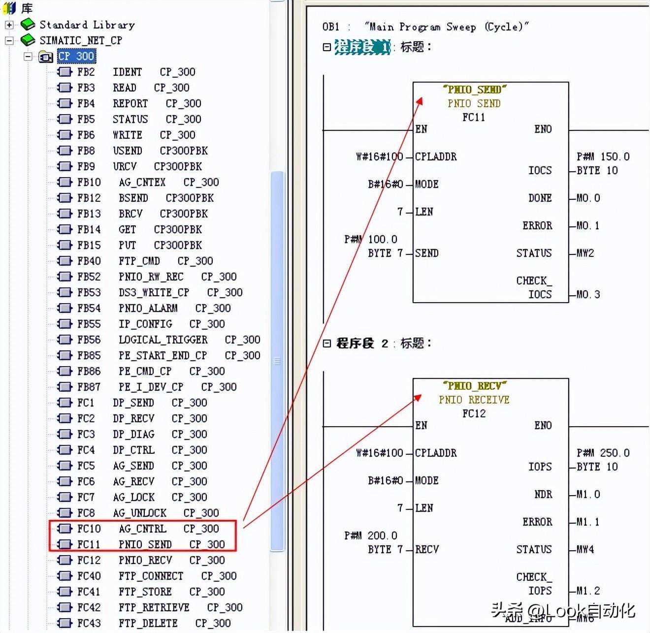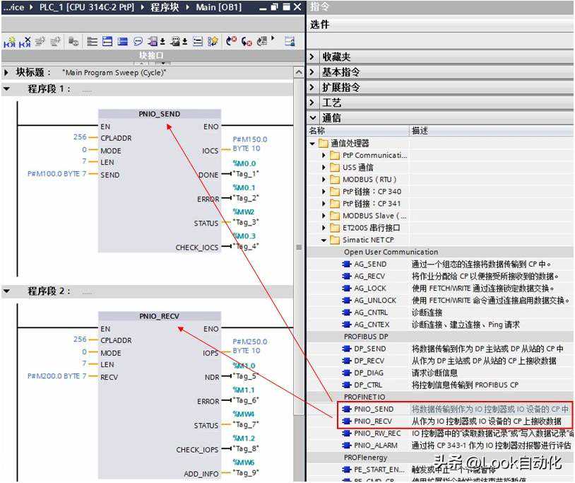 2.6S7-300编程本例中,CP343-1作为IO控制器,需要在OB1中编程调用PNIO_SEND和PNIO_RECV进行数据读写。如图20所示。