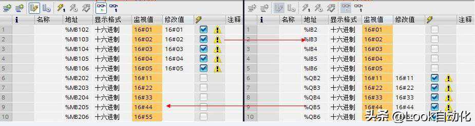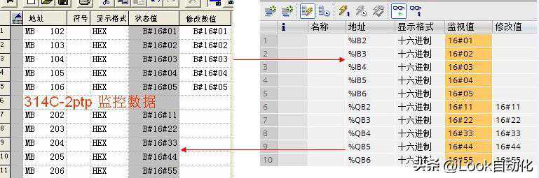 1.5通讯测试检查无错误后,下载S7-300的程序,分别给两个站点新建监控表,添加通信数据区,监控。如图9所示。