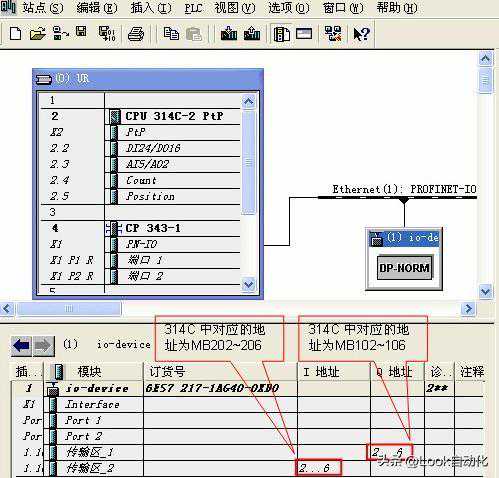 从图中可以看到,当CP343-1作为控制器时,其传送的地址需从0开始的。地址对应排列关系以逻辑地址大小为序。地址如果出现间隔时,如例子中,没有组态的地址区IB0~2(QB0~1)及其对应的MB100~101(MB200~201)也将被传送。